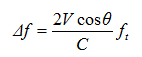 粒物的運動速度與水體流速相同,那么聲學(xué)多普勒頻移,即發(fā)射聲波頻率與回波頻率之差由下式確定,即: